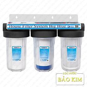 Mua tại Tiktok- Bộ lọc nước đầu nguồn 3 cấp lọc YAMATO 10 inch Bigblue (béo) tiêu chuẩn tích hợp lõi lọc công nghệ 3 cấp lọc loại bỏ tạp chất cặn bẩn và hóa chất tồn dư trong nước: Clo, hợp chất Nhỏ gọn phù hợp lắp đặt chung cư, nhà dân