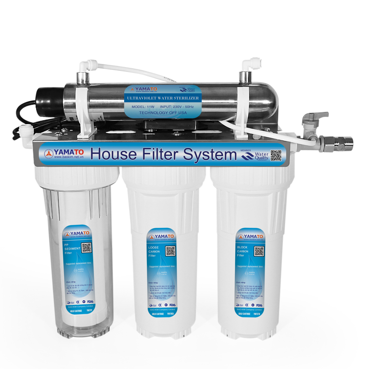 Lọc phèn, các tạp chất Tiết kiệm điện Dễ dàng vệ sinh, lắp đặt Bộ lọc nước sinh hoạt gia đình 3 cấp lọc và 1 đèn diệt khuẩn chuyên lọc nước máy, nước giếng có độ