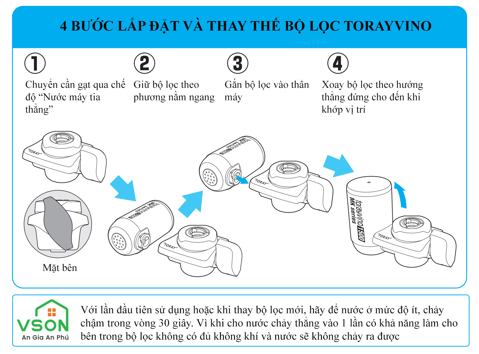 Hướng dẫn lắp đặt máy lọc nước tại vòi Torayvino Nhật Bản