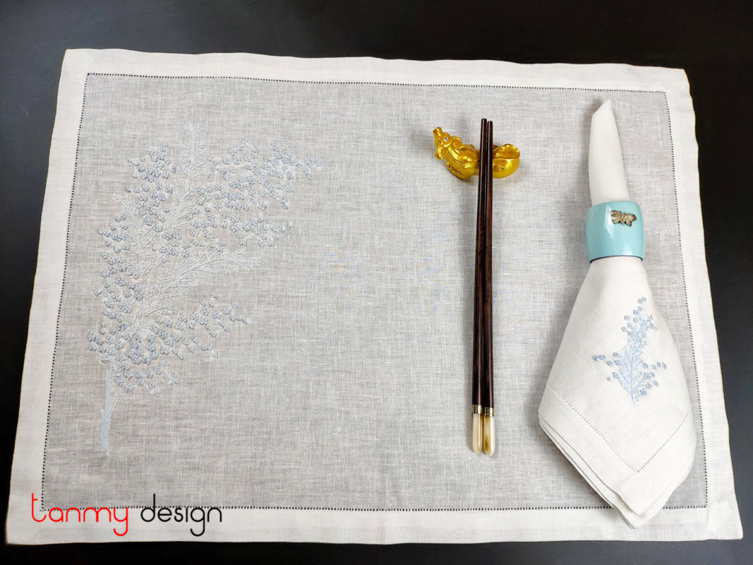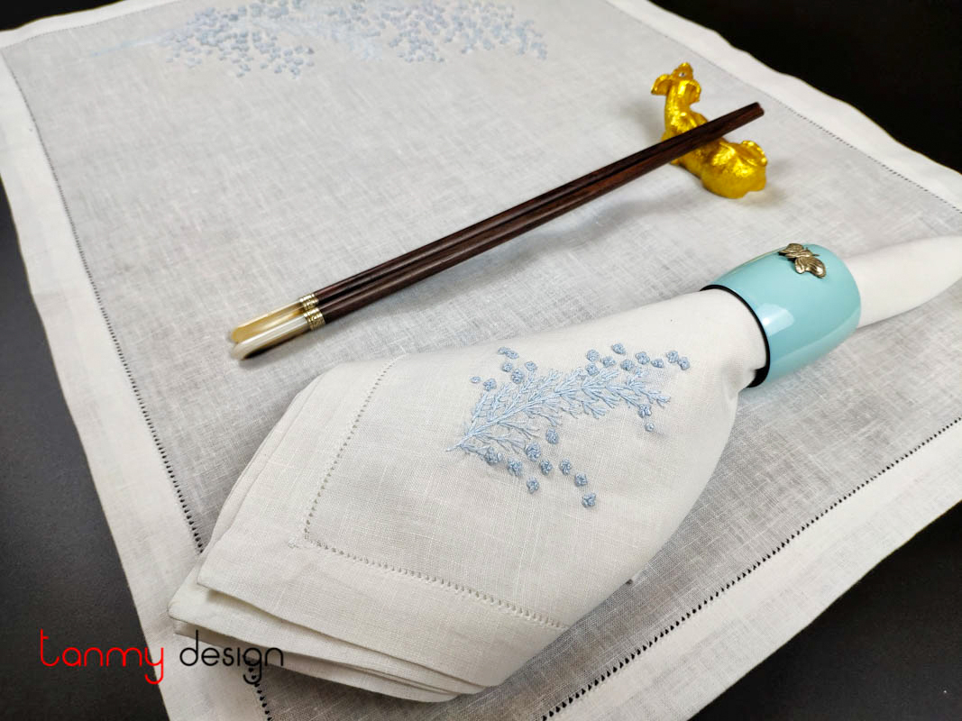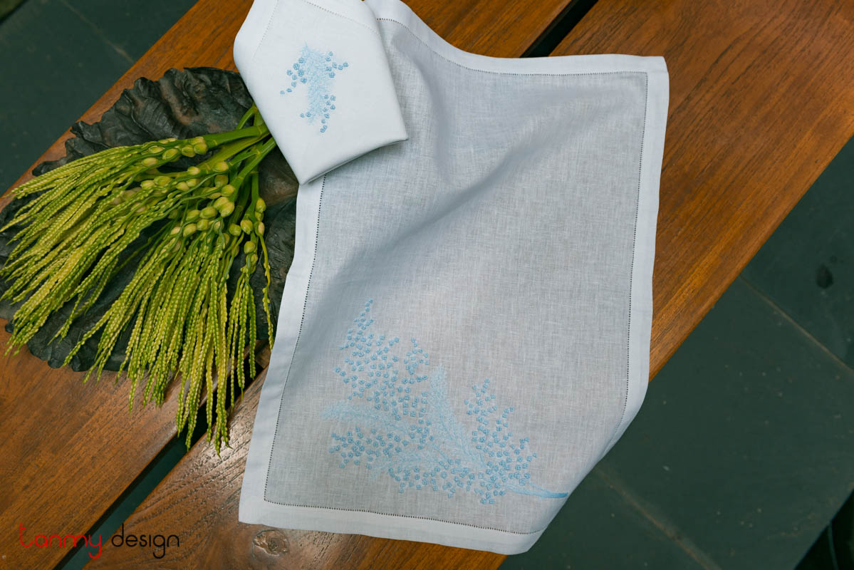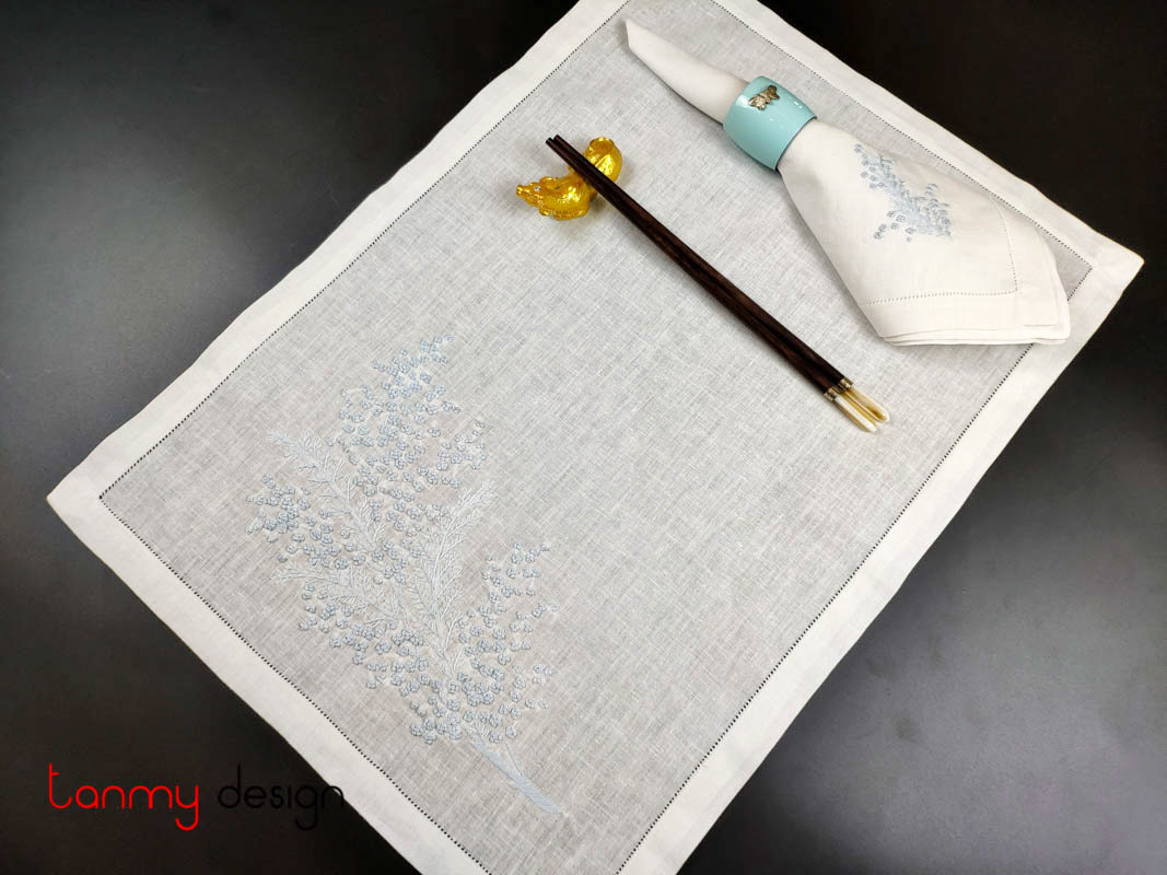 ✨Bộ lót đĩa và khăn ăn linen thêu hoa mimosa