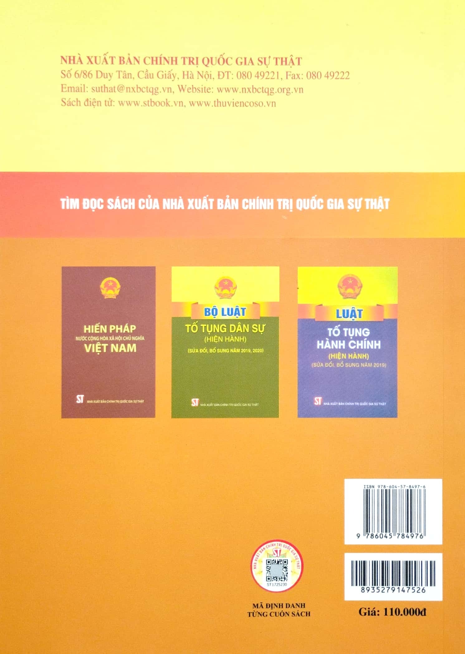 Tác giả: Nhiều tác giả Nhà xuất bản: Chính trị quốc gia sự thật Chiều dài: 21cm Chiều rộng: 15cm Chiều cao: 3cm Số trang: 448 trang  Bộ luật tố tụng dân sự