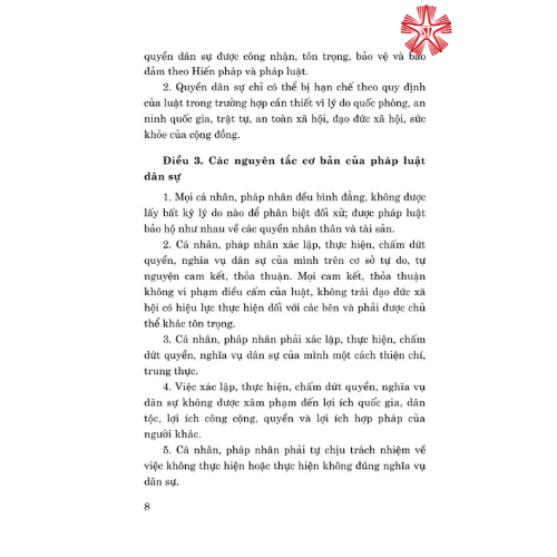 Bộ Luật Dân Sự Nước Cộng Hòa Xã Hội Chủ Nghĩa Việt Nam Nội dung sách bao gồm các văn bản quy phạm pháp luật quy định về địa vị pháp lý, chuẩn mực pháp