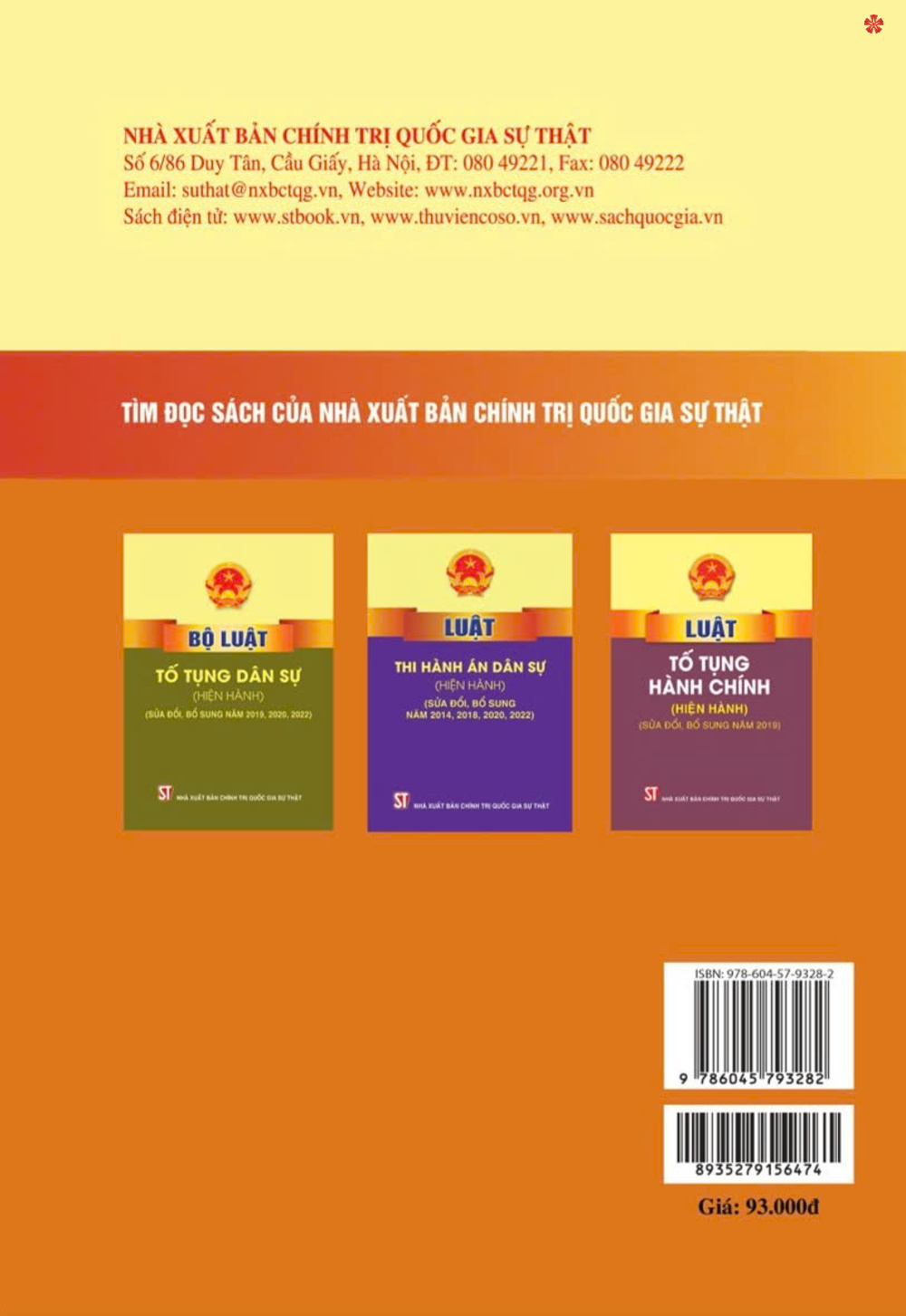 Tác giả: Nhiều tác giả Nhà xuất bản: Chính trị quốc gia sự thật Chiều dài: 21cm Chiều rộng: 15cm Chiều cao: 3cm Số trang: 448 trang  Bộ luật tố tụng dân sự