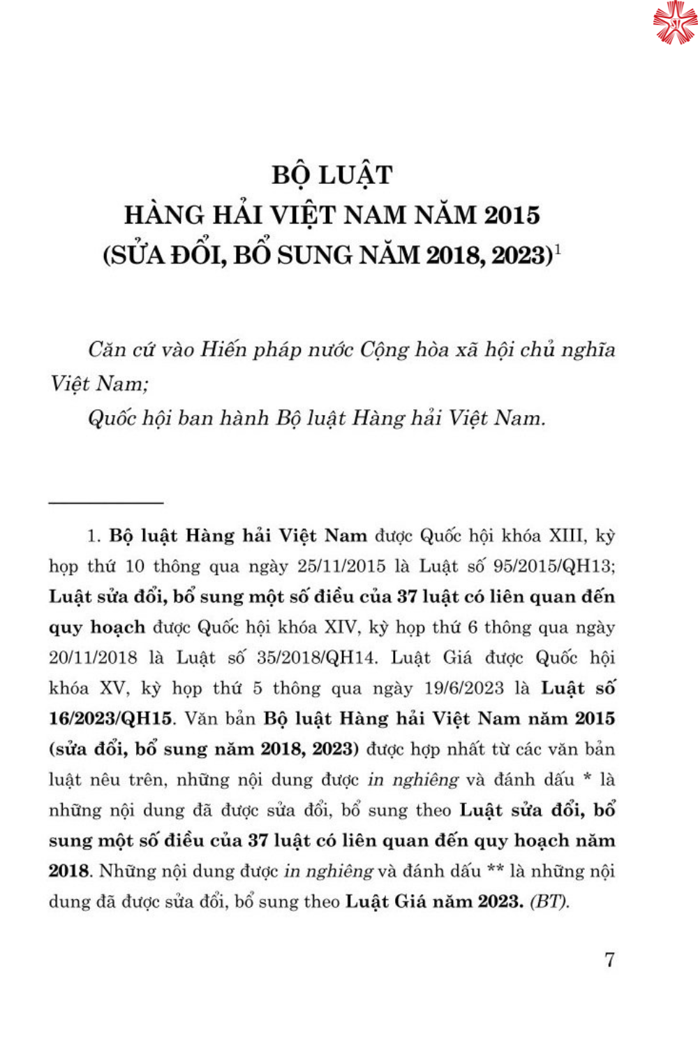 ✨Bộ luật hàng hải Việt Nam năm 2015 (sửa đổi, bổ sung năm 2018, 2023) bản in 2024