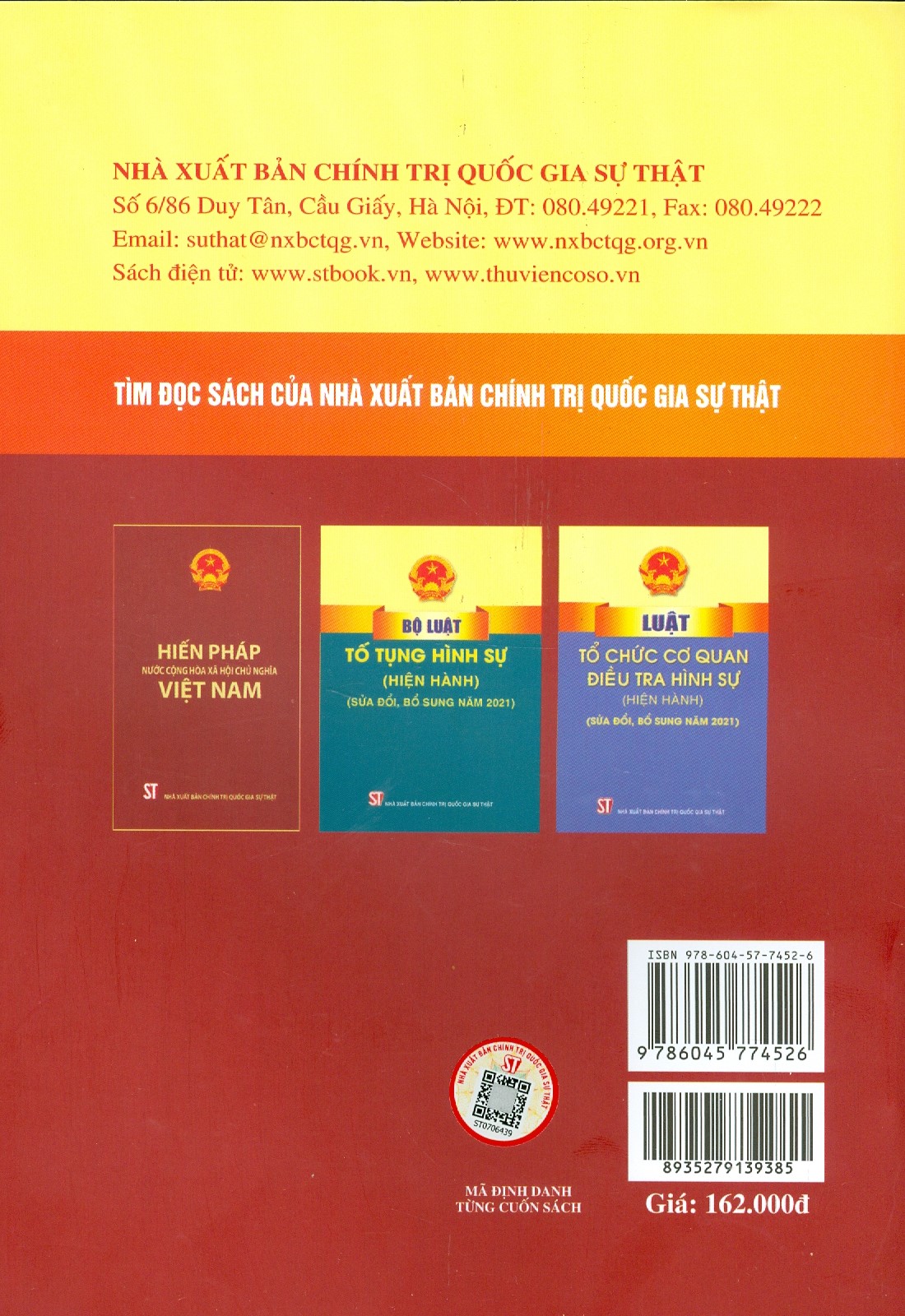 Sách - Luật Thi Hành Án Hình Sự Hiện Hành Tác giả: Quốc Hội Nhà xuất bản: Chính Trị Quốc Gia Sự Thật Khổ sách: 14.5*20.5cm Phát hành: 2022 Công ty phát hành: Nhà sách