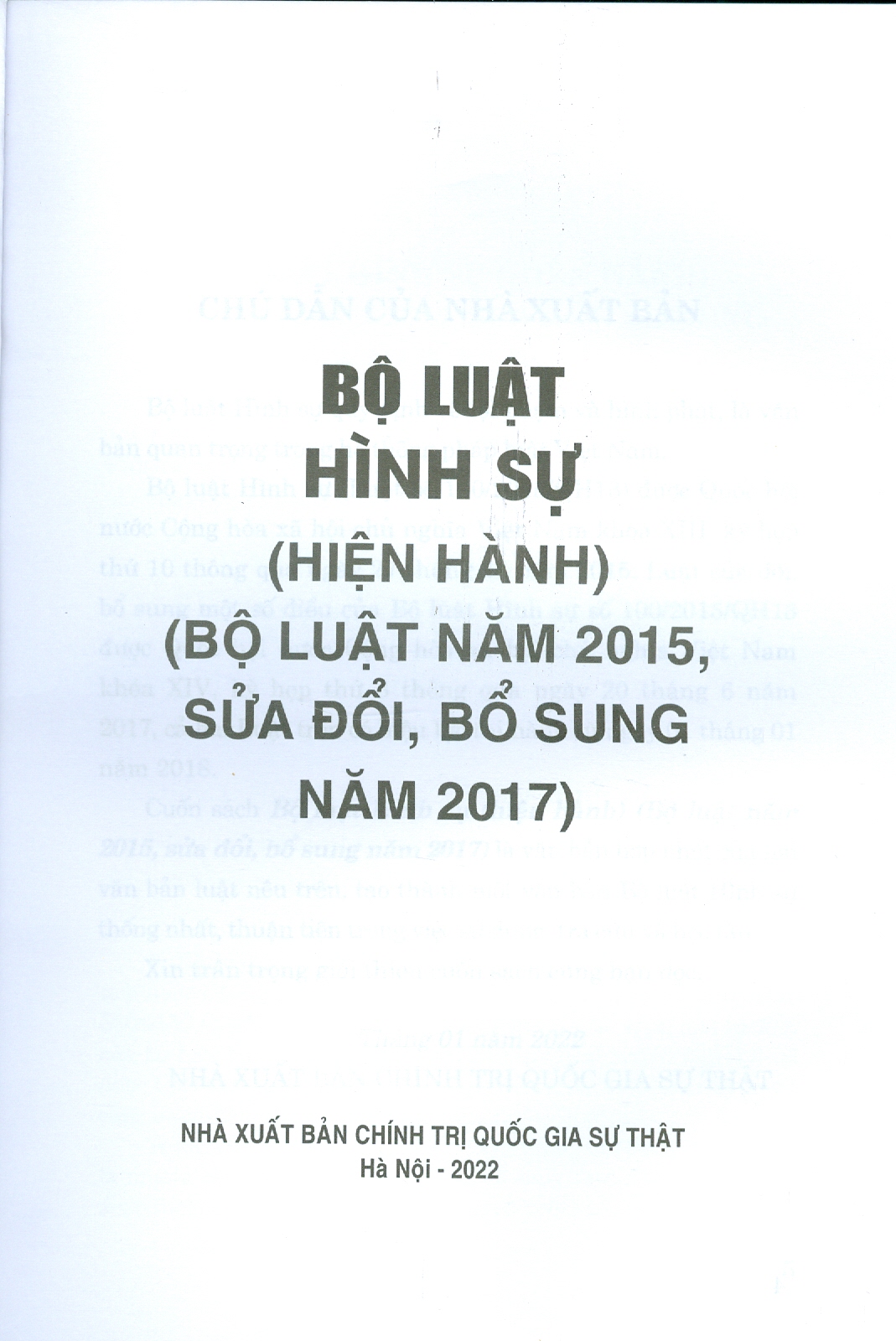 ✨Bộ Luật Hình Sự (Hiện Hành) (Bộ Luật Năm 2015, Sửa Đổi, Bổ Sung Năm 2017) - Tái bản năm 2022