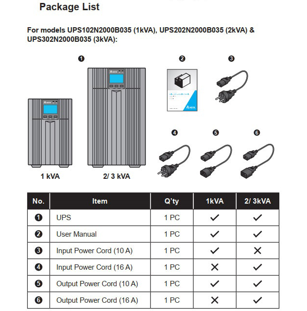 Bộ Lưu Điện Delta N-3K N Series, Single Phase, 3 KVA Model : N-3K Power Rating : [3K]: 3kVA/2.7kW Input • Nominal Voltage : 220/230/240 Vac • Voltage Range : 175 ~