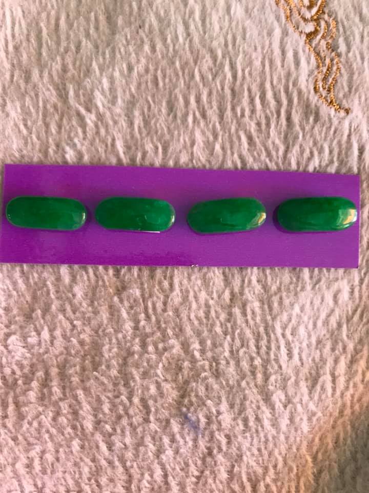 BỘ MẶT YÊN NGỰA GỒM 4 VIÊN ĐÁ CẨM THẠCH XANH LÁ TƯƠI Size Dài 19mm x Ngang 8mm x Dầy 3mm NỮ LÊN LẮC TAY ĐEO ĐẸP Ạ Sản phẩm này là tài sản