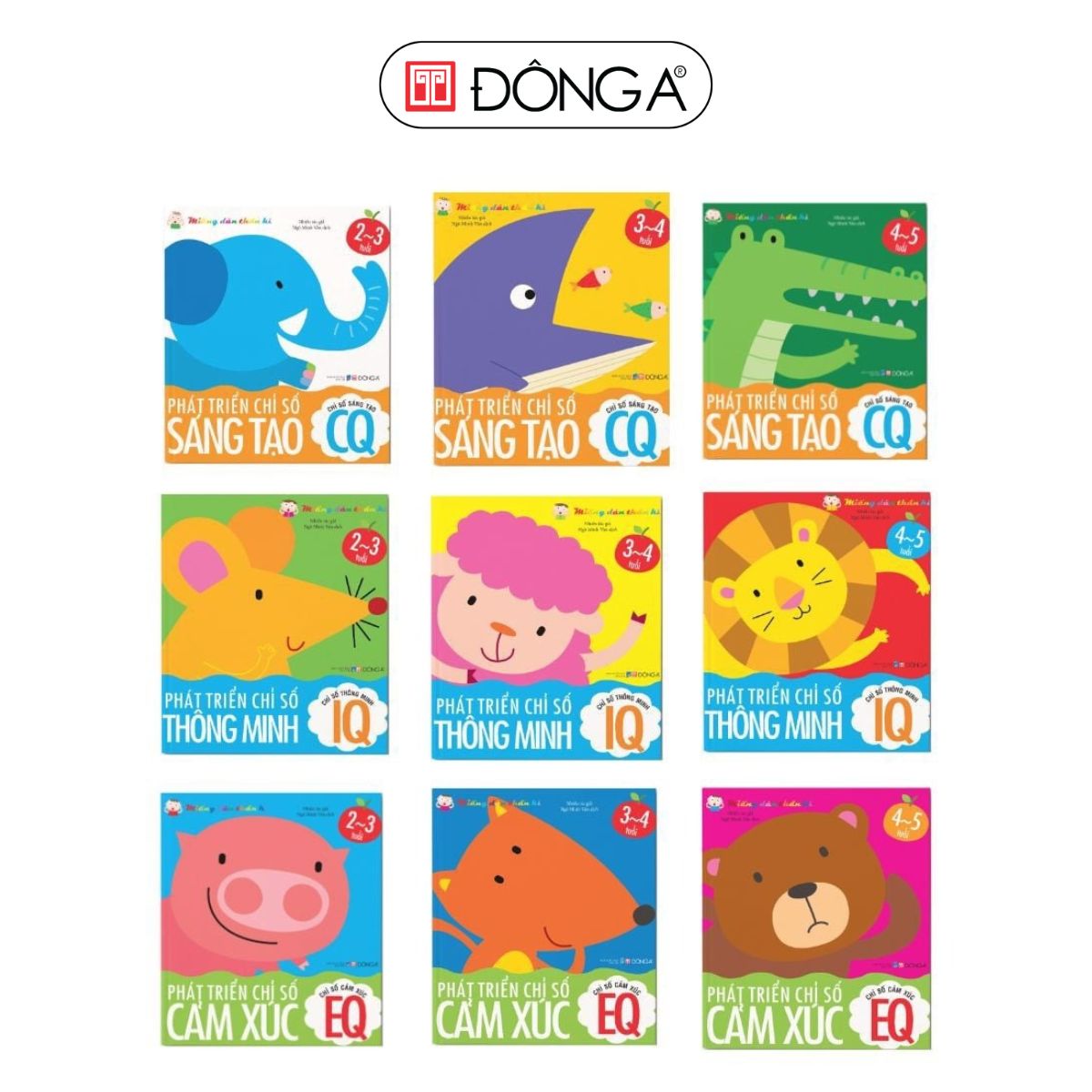 Ở chủ đề Phát triển chỉ số thông minh (IQ), trẻ sẽ được làm quen với các bài tập từ đơn giản đến phức tạp phù hợp với ba nhòm tuổi trên như: tập nhận diện các loài động vật, nhận biết hoa quả dựa theo màu sắc, so sánh các số lượng đơn giản, tập so sánh độ dài-ngắn, giống-khác nhau đến học tính tổng, nhận dạng phần bị khuyết, tập ghép các tổ hợp hình, phân biệt phải-trái, hiện tượng tự nhiên, nhận biết quy luật.
