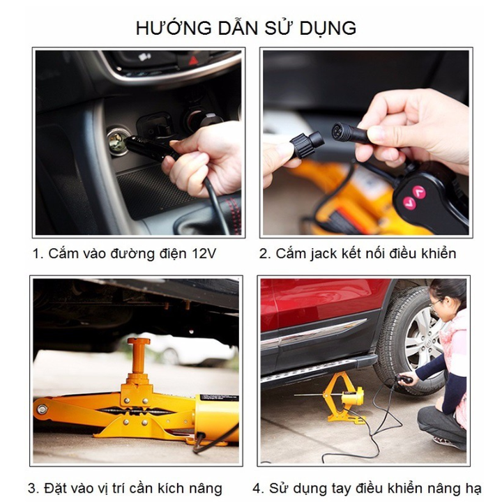 - Kích (con đội an toàn) với hành trình từ 12-35cm, 12-37 và 17-42cm, thời gian nâng 2-3 phút