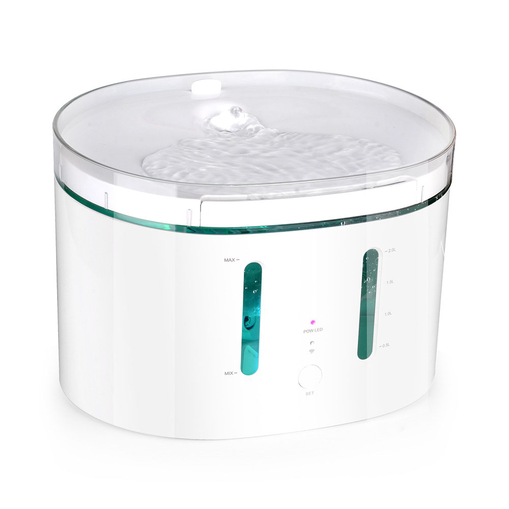 Intelligent pet water feeder is connected to the Tuya APP via WiFi for remote control, compatible with Android and iOS systems. It also supports voice control and is compatible with Alexa and Google Home.