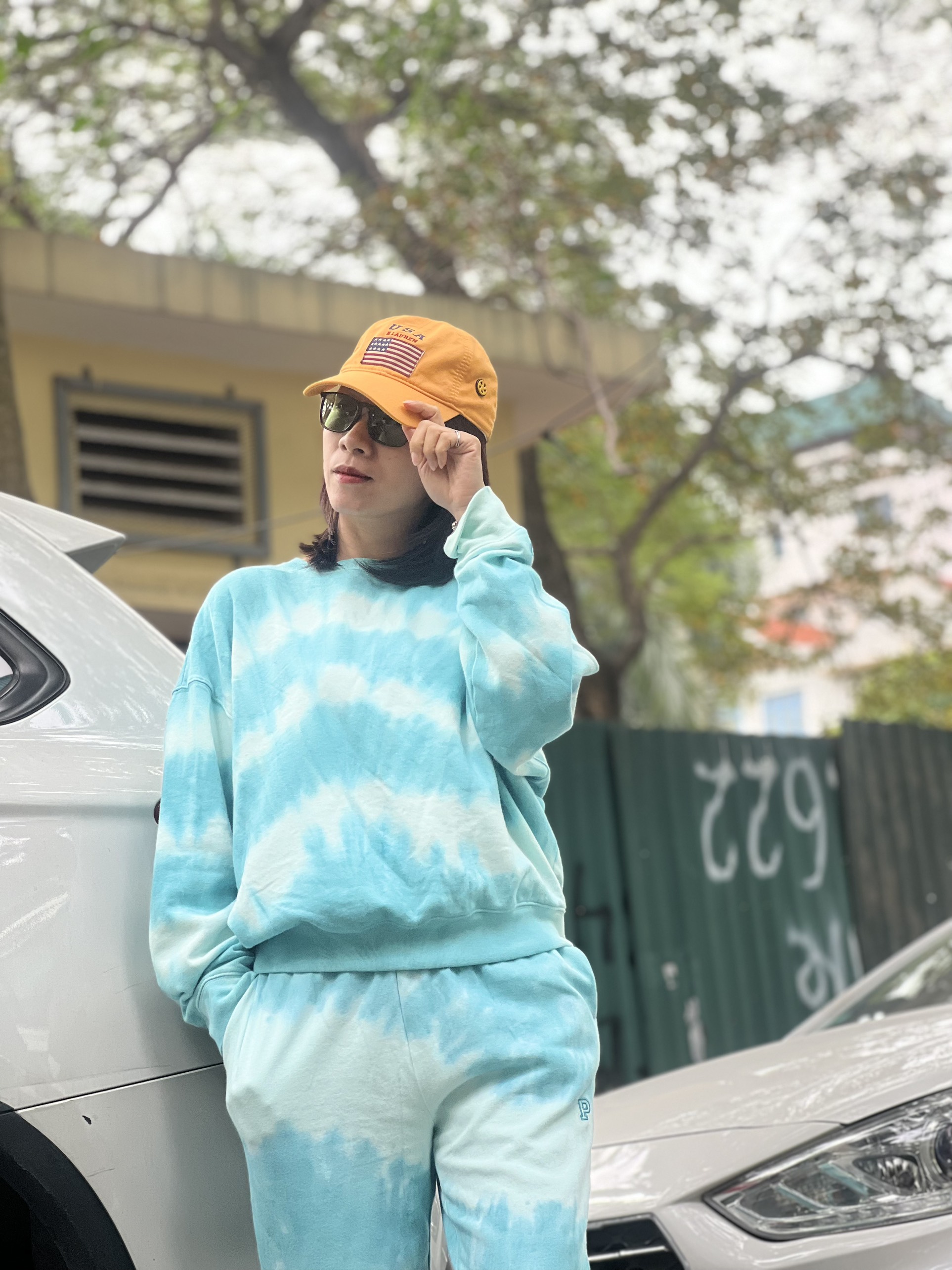 ✨Bộ nỉ Victoria Secret màu xanh loang unisex mềm mịn, thoải mái cho vận động thể thao và phù hợp cả mặc nhà