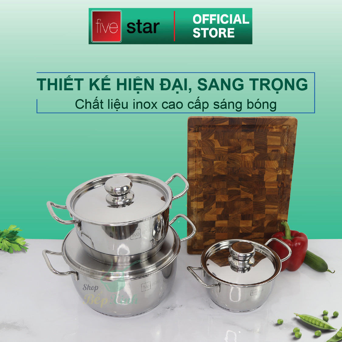 Mua tại TiktokBộ nồi inox Fivestar 3 đáy bếp từ nắp inox
