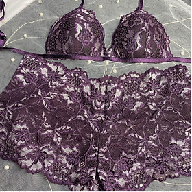 ✨Bộ Nội Y Thiết Kế Ren Cao Cấp Tím Than Có Mút Quần Đùi
