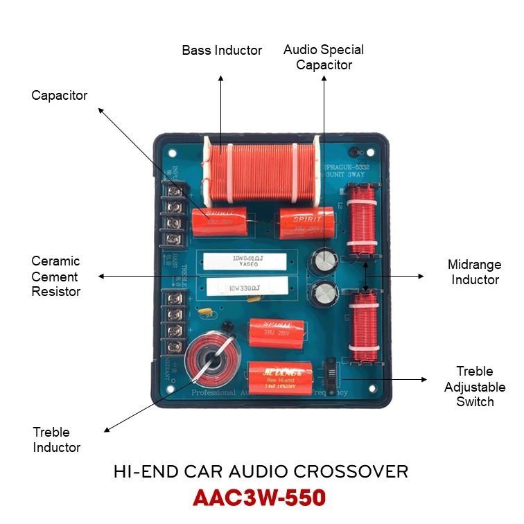 sản phẩm phân tần loa 3 đường AAC3W-550: Sản phẩm AAC3W-550: Thương hiệu: Alchimist Loại loa: 3 đường (3-way) Công suất: 550W Đáp ứng tần số: 40Hz - 22kHz Kích thước bên ngoài: 163 x