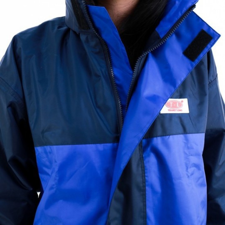 Màu sắc: phối màu xanh dương Lớp vải nhập khẩu đặc biệt siêu chống thấm phía trong áo đảm bảo chống thấm nước tuyệt đối - Có 2 vạt áo che khóa kéo phía trước,