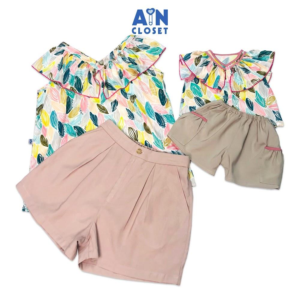 ✨Bộ quần áo ngắn cho mẹ họa tiết Lá ngũ sắc quần kem - AICDMEQ945JB - AIN Closet