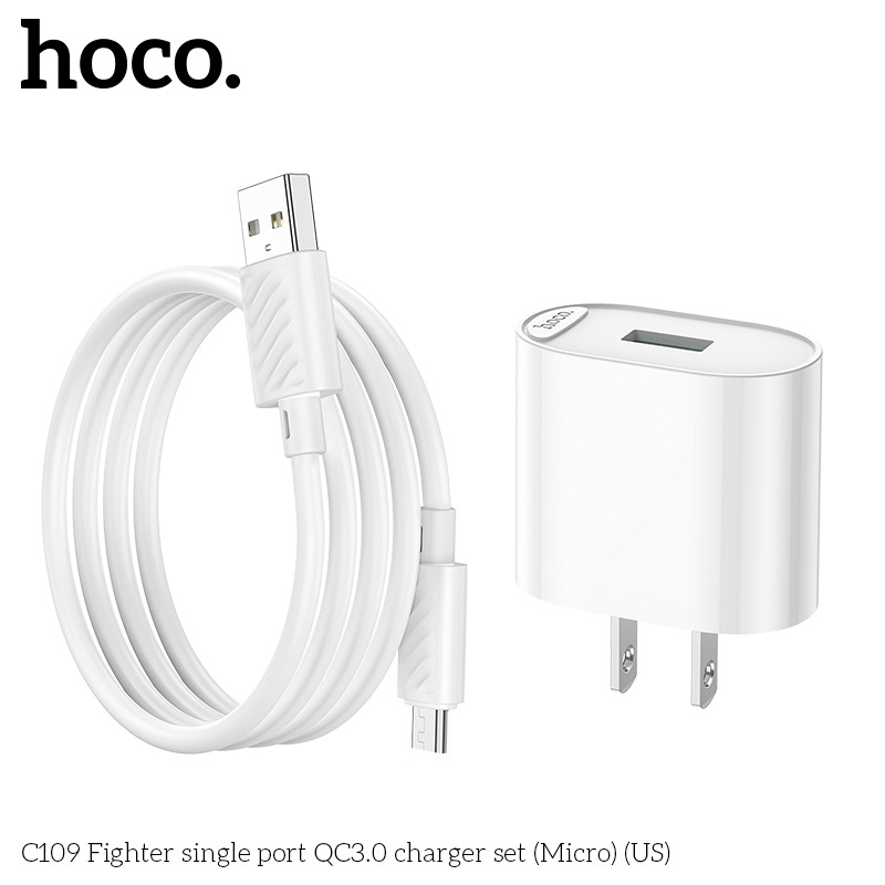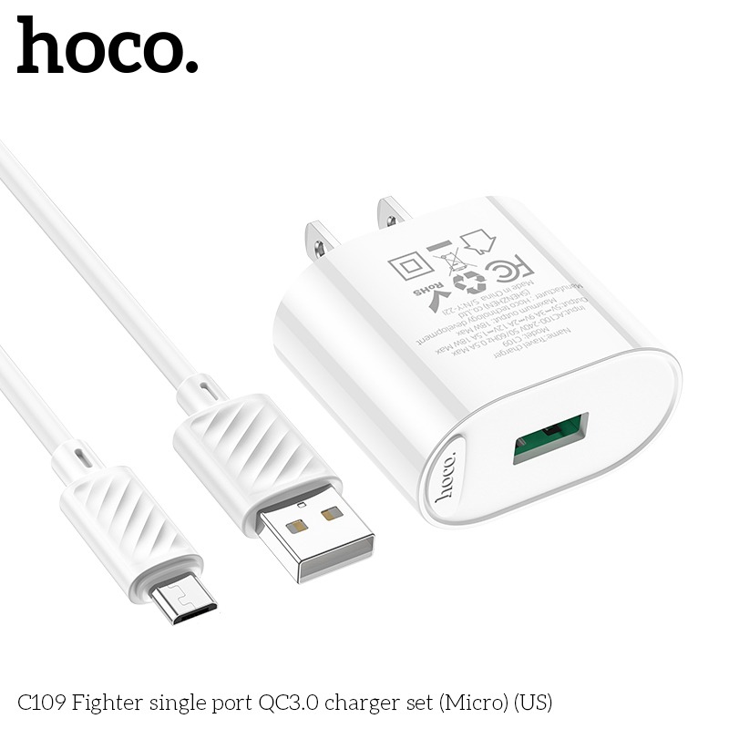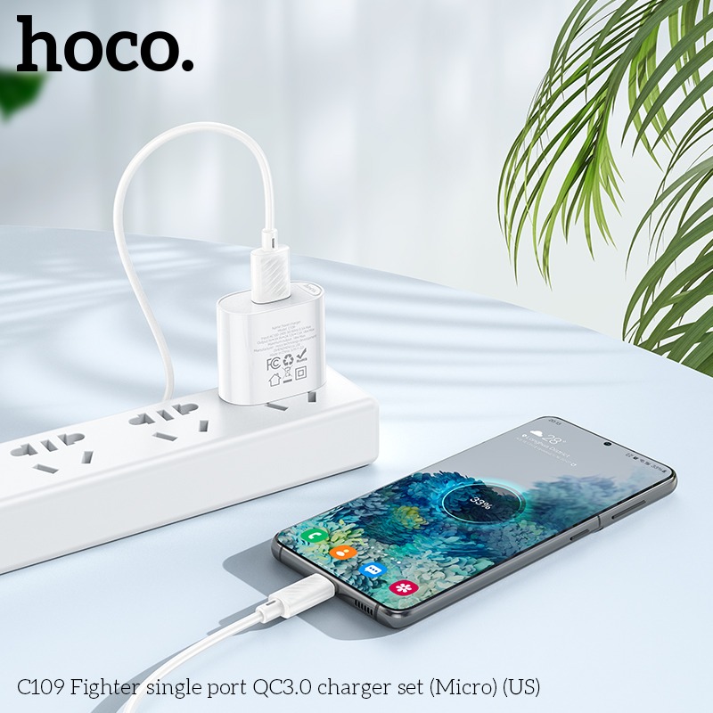 ✨Bộ sạc nhanh 18W Hoco C12Q/C109 TypeC/MicroUsb hỗ trợ QC3.0 sạc nhanh 0-50% Pin Trong 30p dây sạc dài 1m - Hàng chính hãng