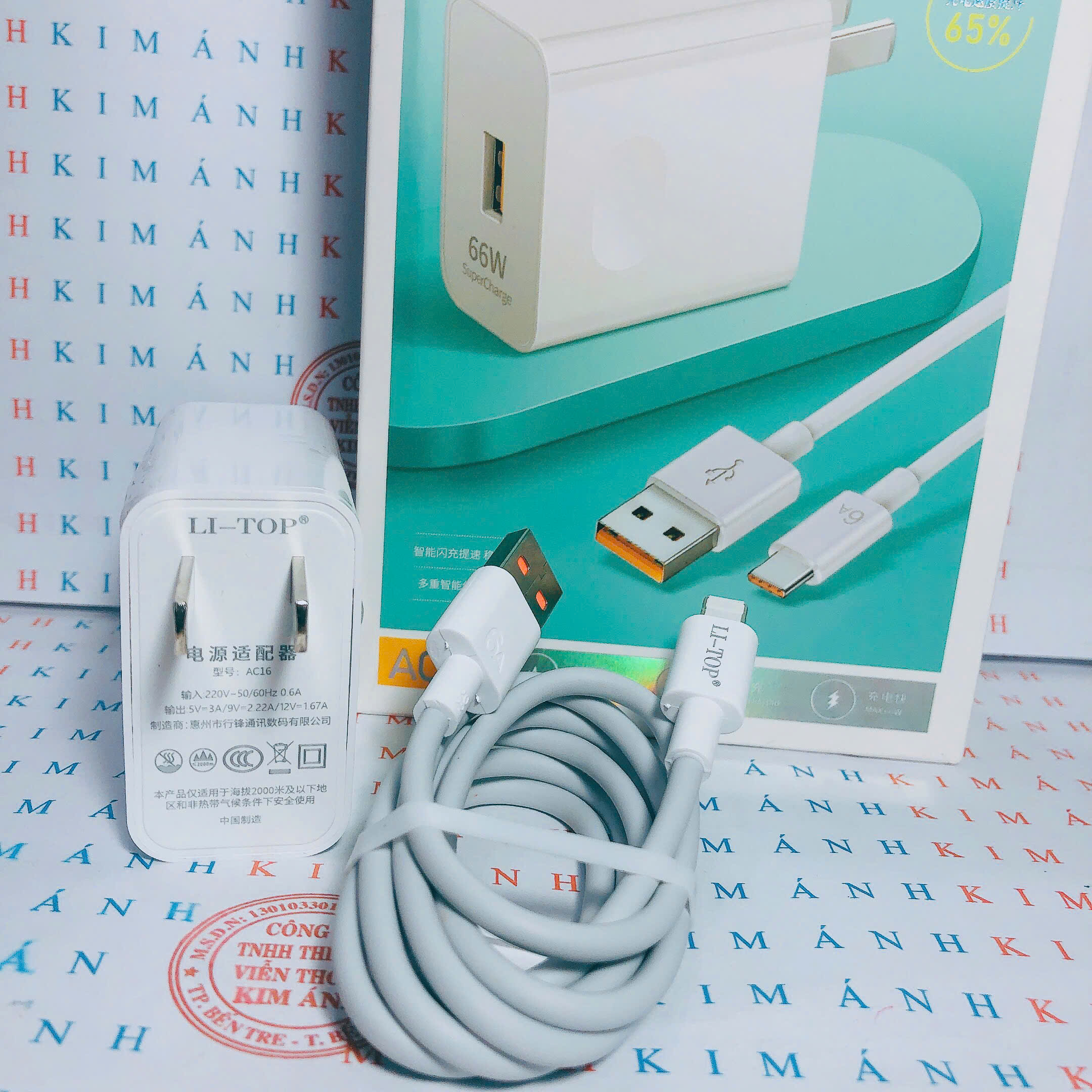 Bộ sạc nhanh 66W LI-TOP AC16 chân L, chứng nhận 3C tiêu chuẩn quốc gia, được dùng thử 30 ngày, bảo hành 12 tháng Sản phẩm Li-Top cho Kim Ánh nhập trực tiếp về, trên thân và hộp có khắc dấu chứng nhận 3C tiêu chuẩn quốc gia, qua kiểm định nghiêm ngặt an toàn thiết bị điện , shop sẽ gửi kèm giấy chứng nhận theo đơn hàng đến cho khách Công suất 66W - chân cắm L Trên dây khắc logo thương hiệu Li-Top, 6A Củ nặng, đầm, chắc tay, hộp đựng đẹp, ngoại quan rất đẹp, anh chị em cửa hàng nhập về bán khách tốt