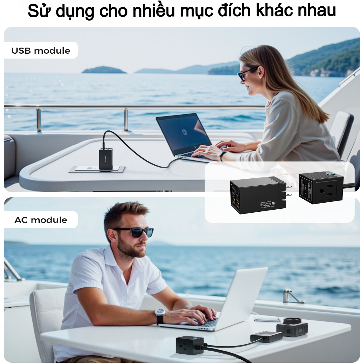 - USB-A1/A2: 5V/3A, 9V/2A, 12V/1.5A (Max 18W mỗi cổng)