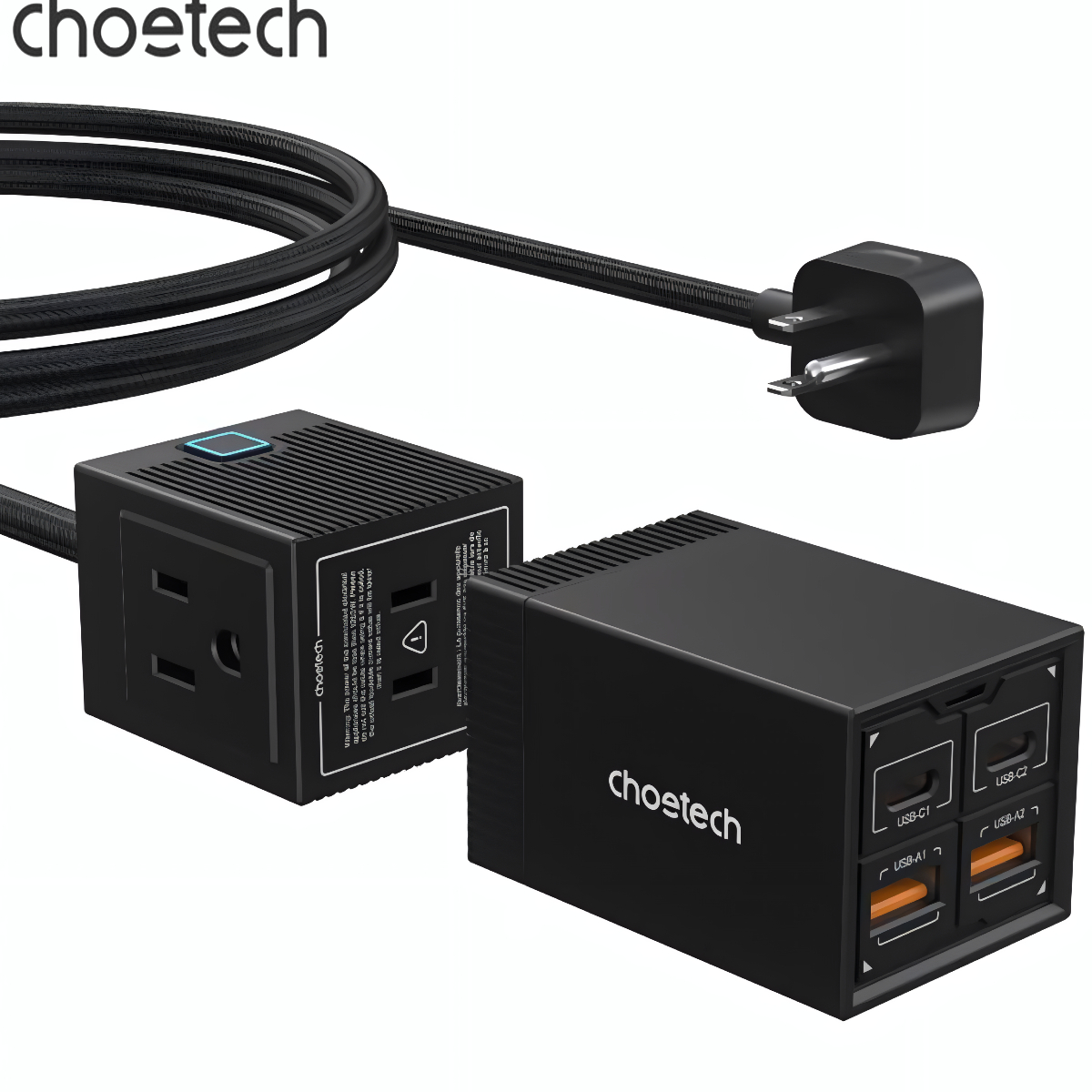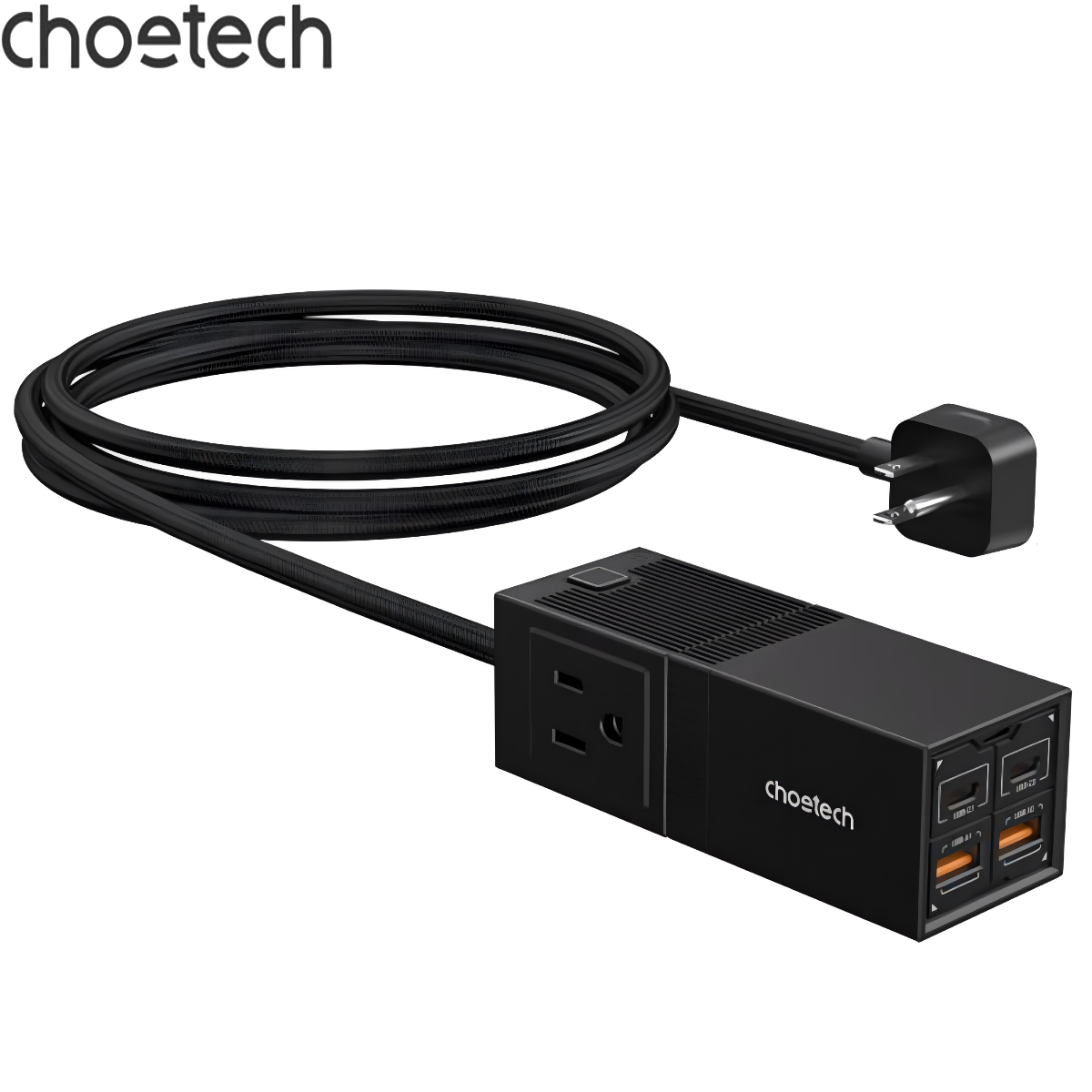 ✨Bộ sạc nhanh GaN Pro 65W (2 Type C+ 2 USB-A) Choetech PD8054 kèm dây AC nối dài 1.5m - Hàng chính hãng