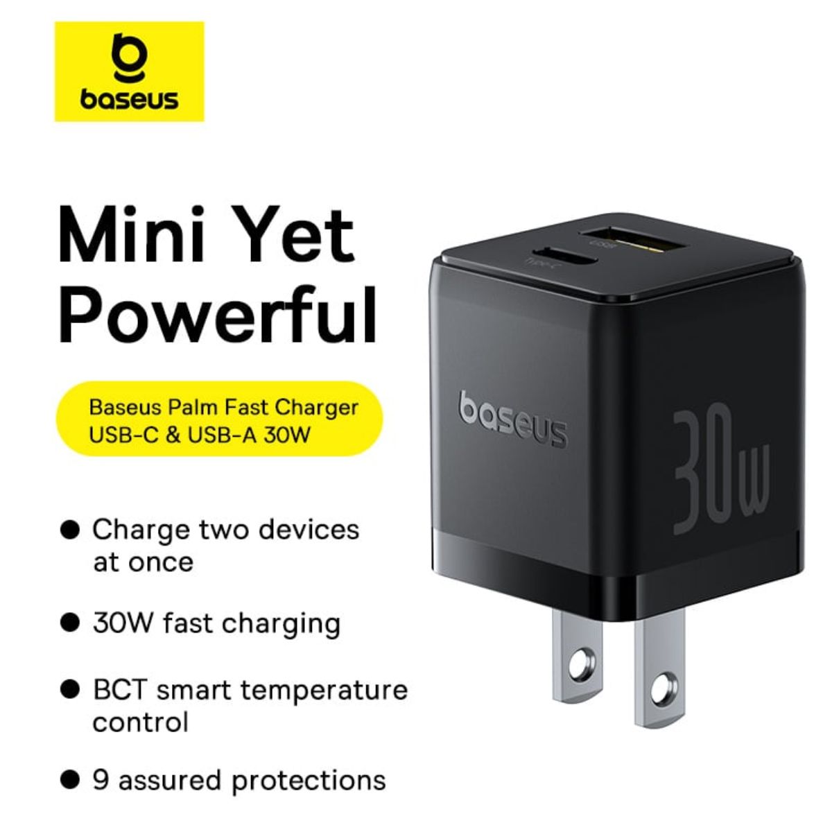 Mua tại TiktokGiới thiệu Bộ sạc nhanh nhỏ gọn 2 cổng Baseus Palm U + C 30W Kèm cáp C to C 60w dài 1M - Hàng chính hãng