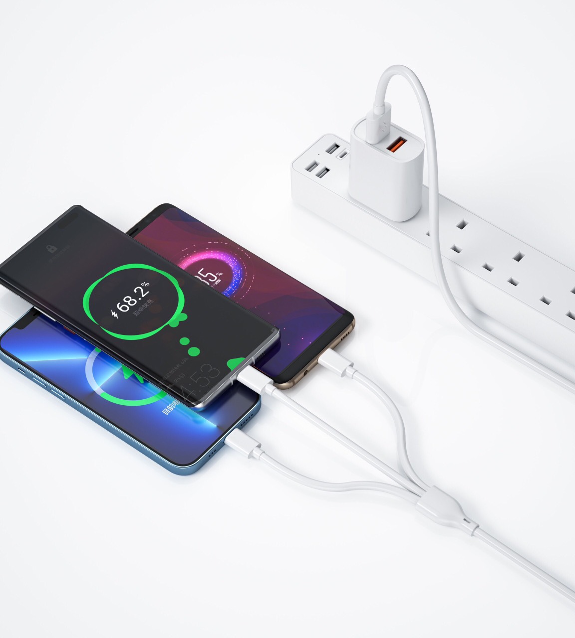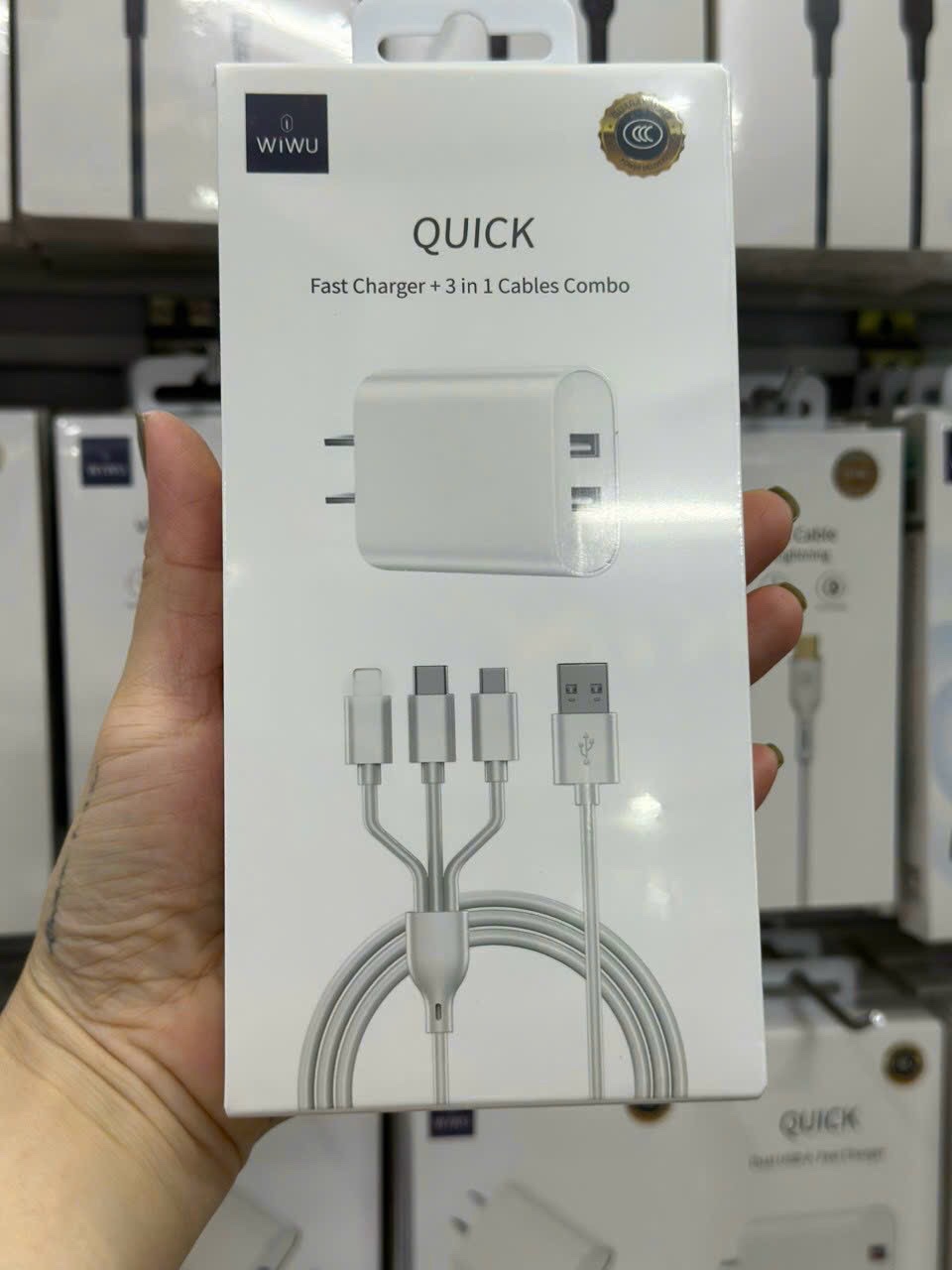 ✨Bộ sạc Wiwu Quick Fast Charger + 3 in 1 Cables Combo Wi-U003 cho điện thoại sạc được 3 thiết bị cùng một lúc - Hàng chính hãng