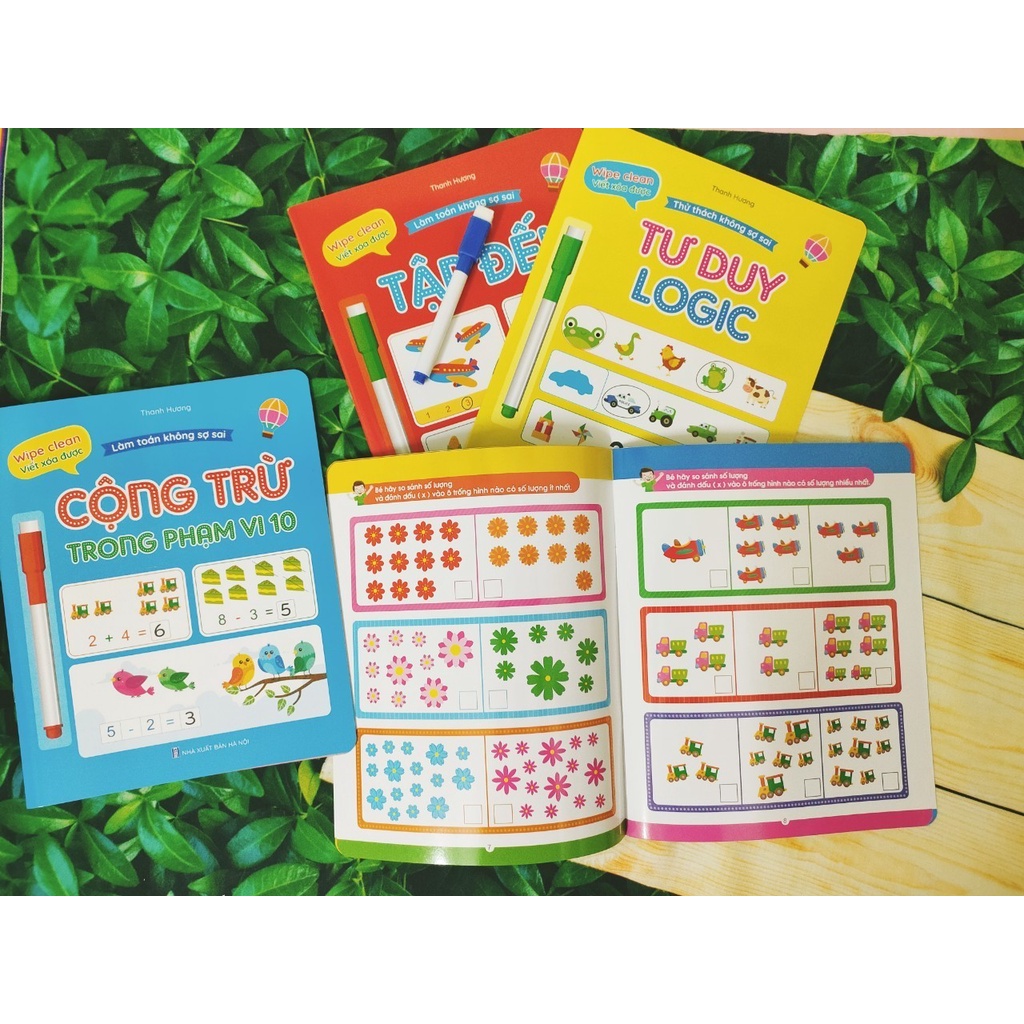 ✨Bộ Sách (4 Quyển) Wipe Clean - Viết Xóa Được Làm Toán Không Sợ Sai: Tập Đếm, So Sánh, Cộng Trừ, Tư Duy Logic