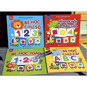 ✨Bộ Sách Tự Xóa Thông Minh - Kèm 02 bút tự xóa - 4 cuốn Toán, Chữ cái, chữ số, hình khối và màu sắc - Sách cho bé học mẫu giáo