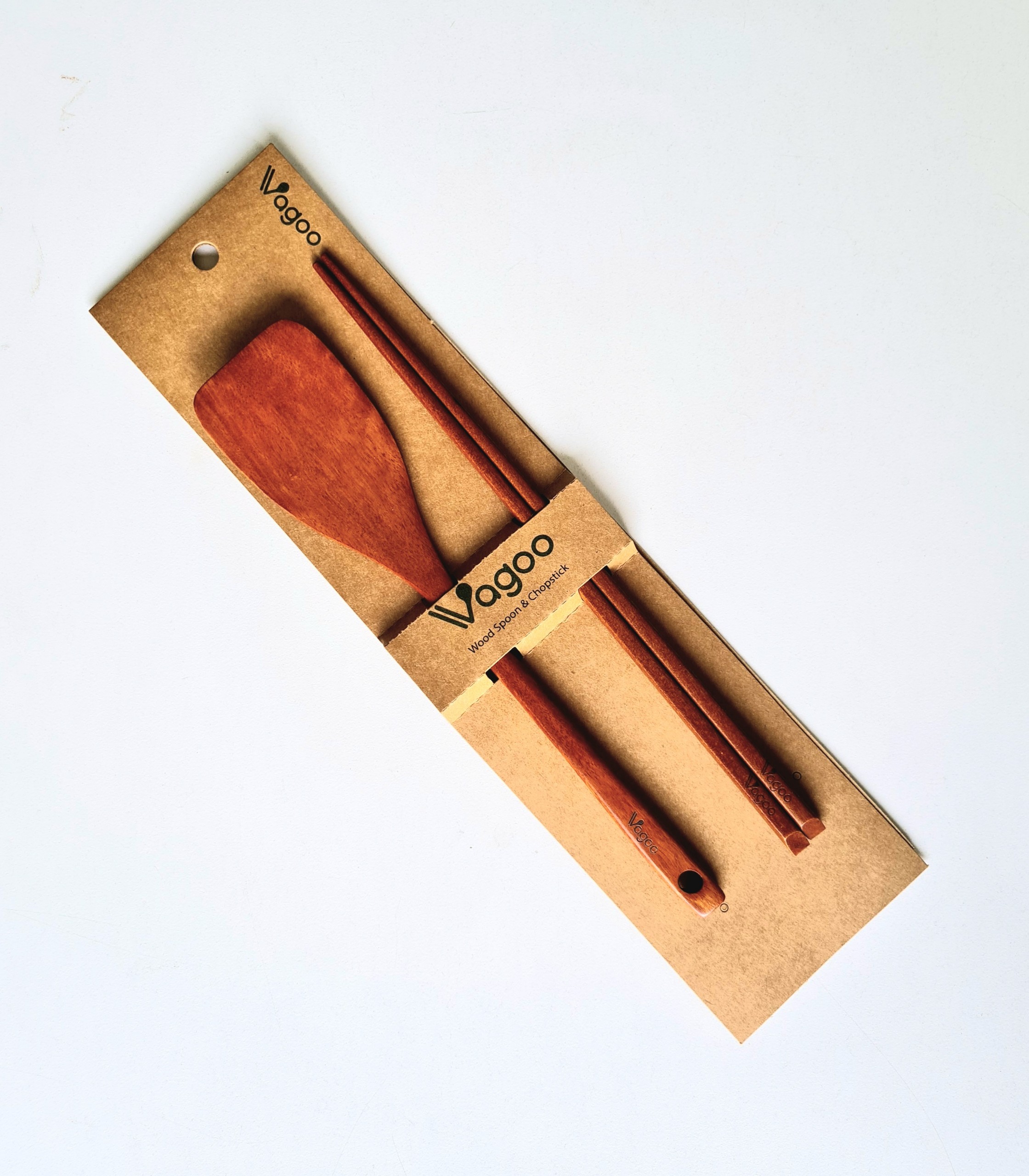 ✨Bộ Sạn & Đũa Bằng Gỗ Nhãn Tự Nhiên - VAGOO - Làm Thủ Công Chống Thấm, Chống Ẩm Mốc, An Toàn Cho Sức Khoẻ