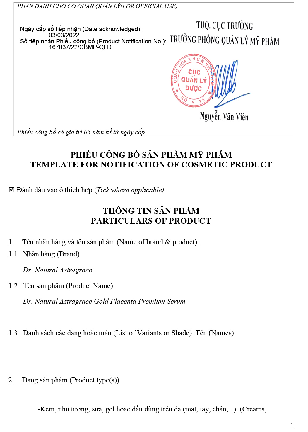 II/ SERUM VÀNG Nhau thai cừu Dr. Natural Astragrace Gold Placenta Premium nhập khẩu chính hãng (50 ml)