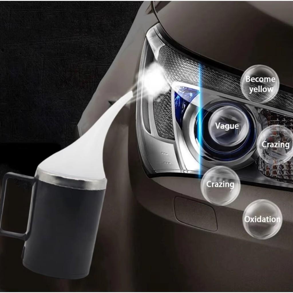 Bước 5: Đổ dung dịch vào cốc làm nóng và bắt đầu xịt phủ đều tay lên bề mặt đèn pha cho đến khi không còn nhìn thấy vết xước.