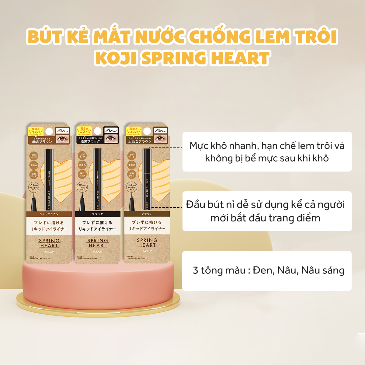 - Bút nước vẽ eyeliner kháng nước chống lem trôi Koji Spring Heart Liquid Eyeliner - Có 3 màu : Đen - Nâu - Nâu sáng