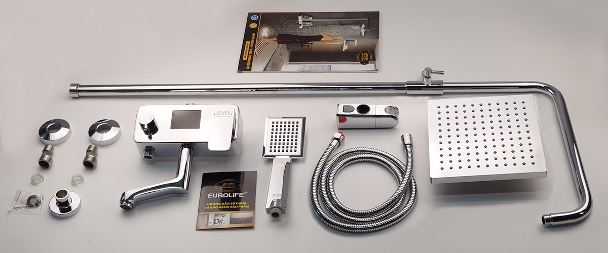 Thân vòi được thiết với hình khối chữ nhật khỏe khoắn, tay mở nguồn nước và núm chuyển chế độ nằm mặt trước tiện dụng. Đặc điểm nổi trội của các sản phẩm Eurolife là nước mạ tinh xảo, sáng bóng không tì vết, mang lại sự hoàn hảo và sang trọng cho phòng tắm