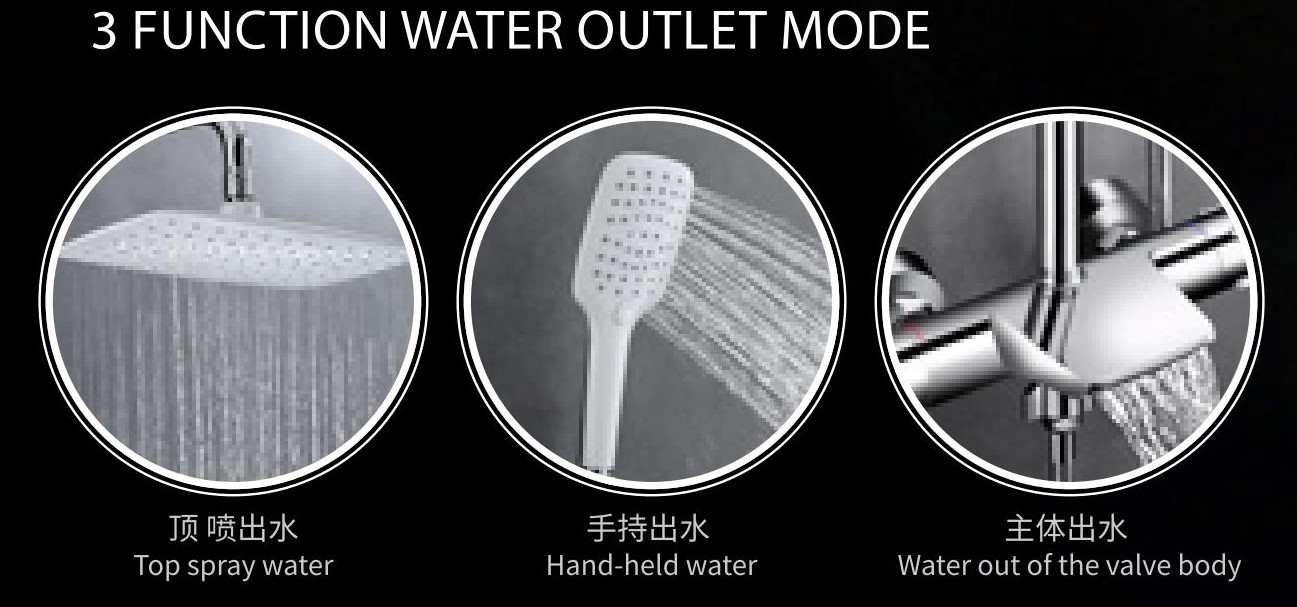 - Sản phẩm gồm 3 vòi: 3 chế độ tắm, riêng vòi tắm nghiêng có 3 chế độ phun nước: Hỗn hợp, Massage, và bình thường.