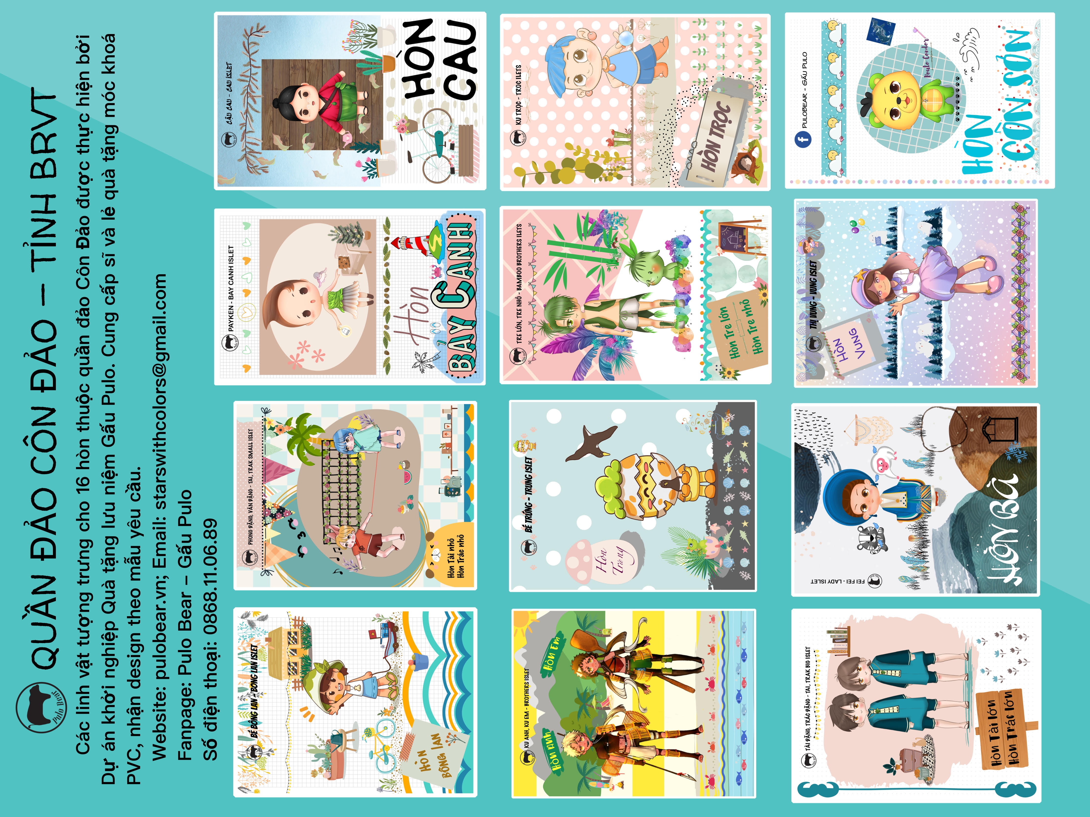 Thiết kế độc quyền: Hình ảnh Gấu Pulo được vẽ với nhiều dáng vẻ dễ thương: cười, vẫy tay, đọc sách, vui chơi…