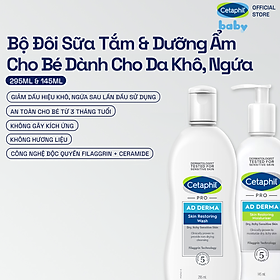 Mua tại TiktokBộ Sữa tắm dưỡng ẩm cho viêm da cơ địa Cetaphil Pro AD Derma Wash 295ml + Sữa dưỡng ẩm dịu lành cho viêm da cơ địa CETAPHIL PRO AD DERMA SKIN RESTORING MOISTURIZER 145ml