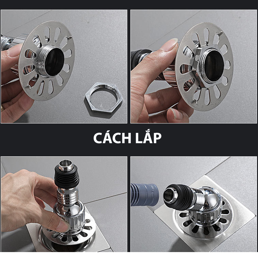 - Chụp bộ thoát nước lên lỗ thoát sàn