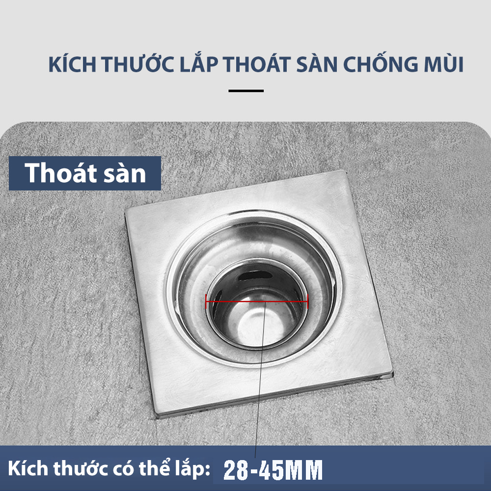 Hố Ga Phểu Thoát Sàn Inox, có 2 mẫu, với kích thước sau: 1. Mẫu phểu dập, dày 0.4mm, kích thước vuông 12cm, 15cm 2. Mẫu phểu đúc, dày 1.2mm, kích thước vuông 10cm, 12cm,
