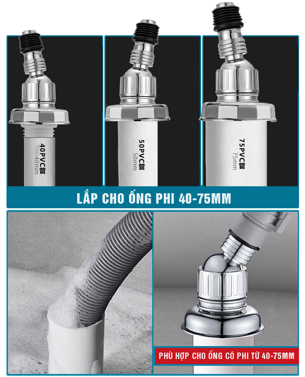 Vị trí lắp: bộ thoát nước máy giặt, thoát nước thải kiêm chống mùi hôi trào ngược được Lắp vào thoát sàn hoặc ống chờ nơi đặt ống xả thải máy giặt, nơi thoát nước thải ống điều hòa, nơi thoát nước chậu rửa mặt lavabo, chậu rửa bát, nơi thoát nước khác