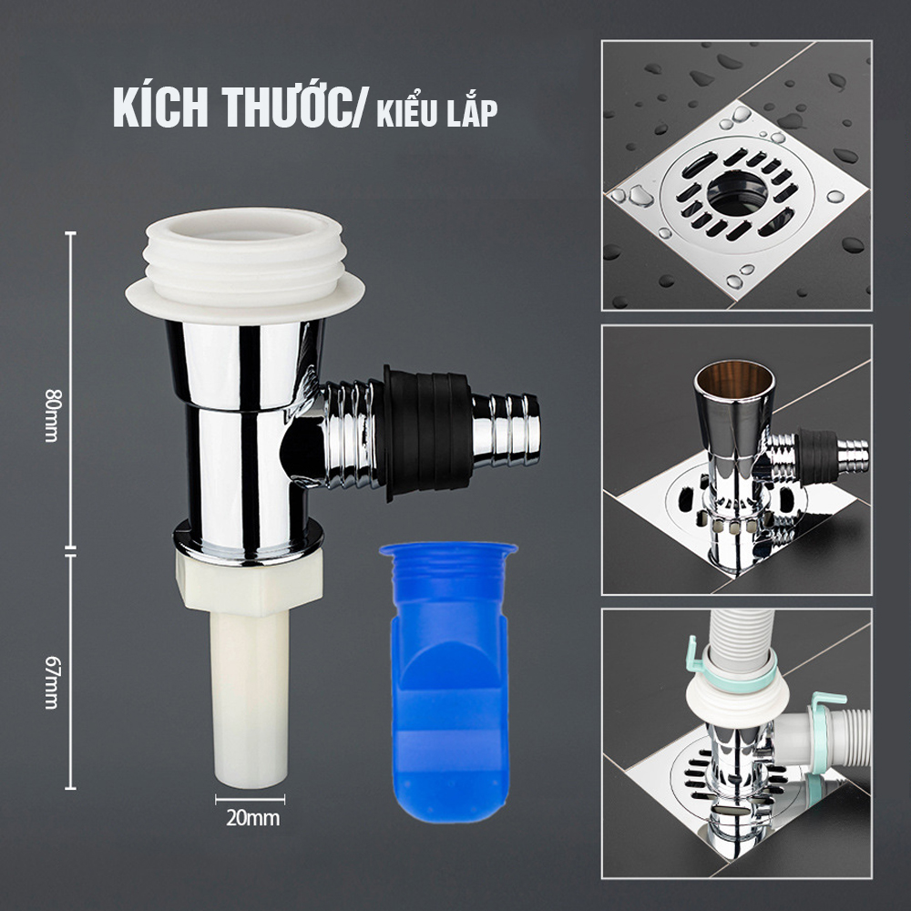 - Silicone chống mùi trào ngược (Nhựa mềm) Lưu ý: Không bao gồm đế thoát sàn Mô tả Bộ thoát nước máy giặt, nước thải, chống mùi hôi, ngăn côn trùng lắp thoát sàn, chia 2 khe, Minh House Đừng để nước máy giặt, xà phòng máy giặt, nước thải, nước máy lạnh điều hòa, nước khác… chảy lênh láng ra sàn gây rêu mốc, trơn trượt và mất mỹ quan, không những thế còn gây mất vệ sinh, mùi hôi bốc lên từ cống, lâu ngày vi khuẩn tích tụ thành ổ dịch gây bệnh cho trẻ nhỏ, người già và mọi người trong gia đình. Giải pháp: Dùng Bộ thoát nước máy giặt, nước thải, chống mùi hôi, ngăn côn trùng lắp thoát sàn khe, chia 2, Minh House Vị trí lắp: bộ thoát nước máy giặt, thoát nước thải kiêm chống mùi hôi trào ngược được Lắp vào thoát sàn có sẵn nơi đặt ống xả thải máy giặt, nơi thoát nước thải ống điều hòa, nơi thoát nước khác… Ưu điểm: Thoát nước cùng lúc 2 thiết bị như máy giặt và chậu rửa (Hoặc nước điều hòa…) bên cạnh đó nước sàn vẫn thoát như bình thường. Hướng dẫn lắp đặt Bộ thoát nước máy giặt, nước thải, chống mùi hôi, ngăn côn trùng lắp thoát sàn, chia 2 khe, Minh House Lắp vào thoát sàn có sẵn (Xem Video minh họa) 1 bộ gồm:
