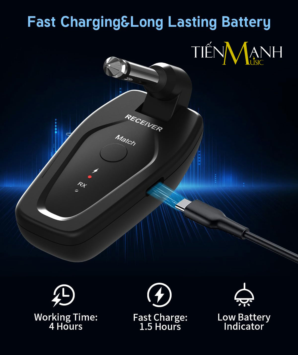 - Nguồn cung cấp: Pin liti có thể sạc lại tích hợp (3.7V 700mAh)