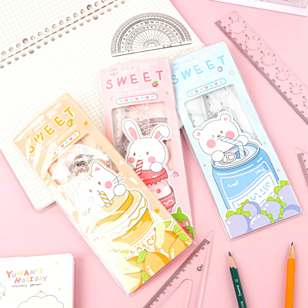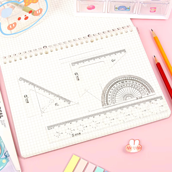 ✨Bộ thước kẻ 4 món - túi đựng nhựa trong hoạt hình dễ thương - Giao mẫu ngẫu nhiên