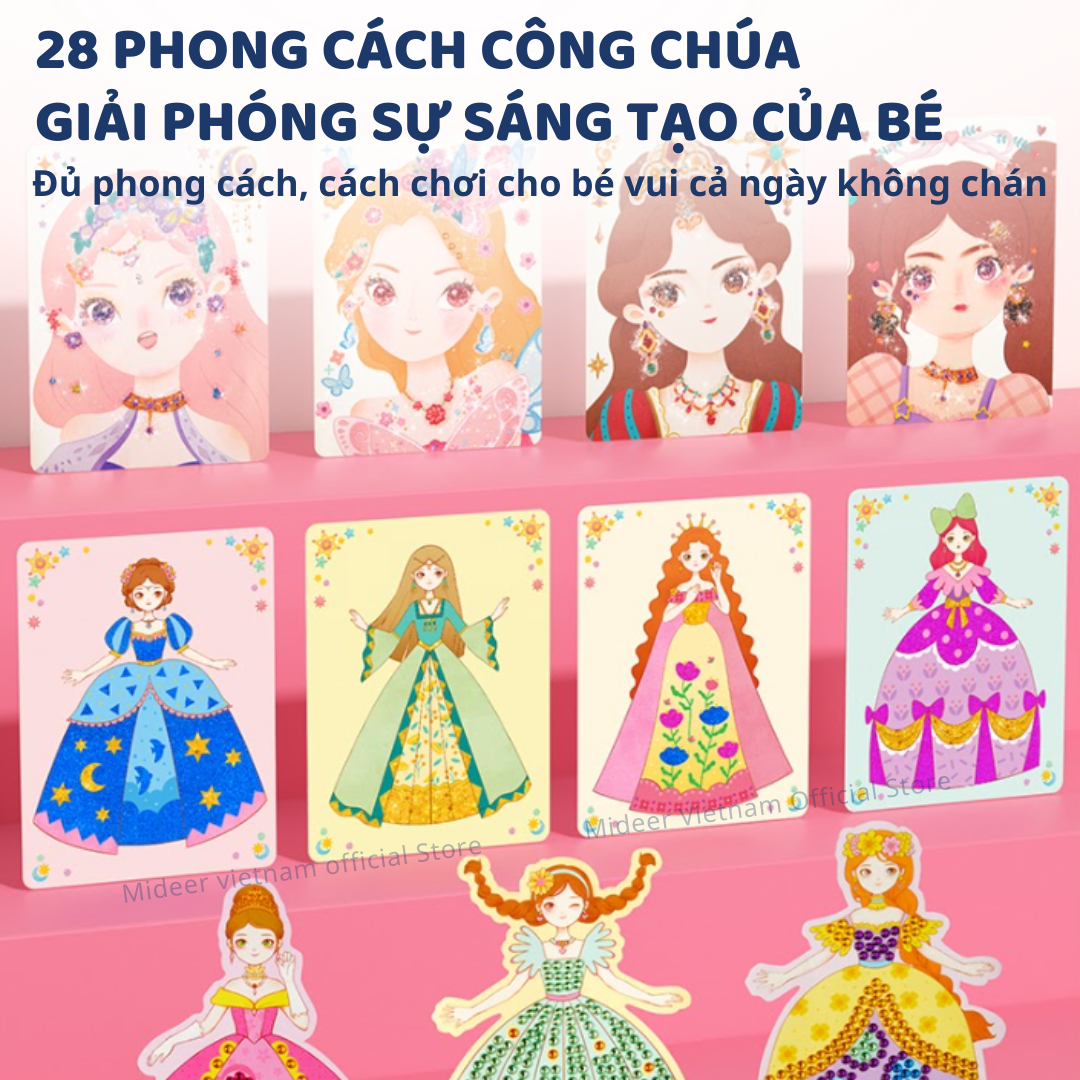 - CÓ THỂ DÙNG ĐỂ TRANG TRÍ TRONG NHÀ Sau khi con hoàn thành tác phẩm, ba mẹ có thể giúp con bóc miếng dán công chúa ra và dán lên bất kỳ bề mặt nào để trang trí. Bộ trang điểm thiết kế thời trang Mideer 3 trong 1 Princess Fantasy Makeup