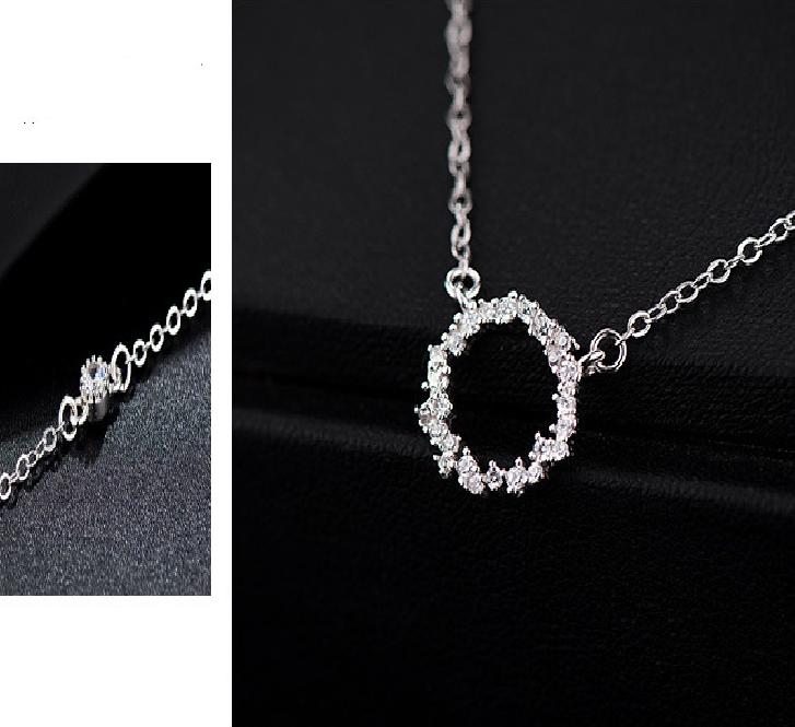Dây chuyền Huyền Thoại Biển Xanh, Vòng cổ cho nữ mặt dây chuyền hình tròn gắn đá nhỏ, Bạc Ý 925