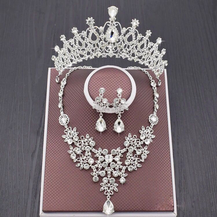 ✨Bộ trang sức vương miện cô dâu, vòng cổ và bông tai full đá lấp lánh