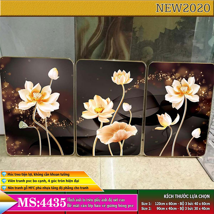 BỘ SẢN PHẨM HOÀN CHỈNH GỒM CÓ:  Bộ tranh gồm 2 loại với các lựa chọn cụ thể như sau:+ Loại 1: Gồm 3 tấm 40 x 60cm - kích thước tổng thể 120cm x 60cm+ Loại 2: Gồm 3 tấm 30 x 40cm - kích thước tổng t...