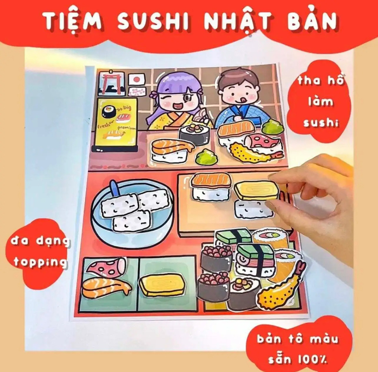 - Gồm tranh tiệm sushi vẽ và tô sẵn.