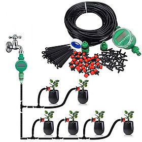 Bộ tưới cây tự động 20 béc nhỏ giọt kèm van nước hẹn giờ là 1 hệ thống tưới nhỏ giọt đơn giản nhưng đầy đủ và dễ sử dụng. Nó được thiết kế để đáp ứng nhu cầu tưới nhỏ giọt cho vườn nhỏ ( dưới 20 chậu ) của bạn. Hệ thống tưới nhỏ giọt đơn giản bao gồm tất cả các phần cần thiết cho 1 hệ thống tưới nhỏ giọt có thể dễ dàng lắp ráp bằng cách riêng của bạn mà không cần bất kỳ công cụ đặc biệt. Bạn chỉ phải bận rộn 1 lần, sau đó là chuỗi ngày tưới cây nhàn nhã thư thả. Hệ thống tưới bao gồm cả đồng hồ hẹn giờ tự động, bạn có thể kết nối với nguồn nước máy áp lực khỏe tương đối hoặc téc nước từ trên cao (>2m) hoặc bơm tăng áp tự động là hệ thống có thể hoạt động. Các tính năng:  Bộ nhỏ giọt có thể được kết nối trực tiếp với vòi có ren (vòi máy giặt hoặc đầu ống nhựa PVC), rất tiện lợi và thiết thực.  Cắt vòi, thích nghi với điều kiện cố định cục bộ, phù hợp hơn.  Nắp màu đỏ của đầu thả có thể điều chỉnh được xoắn thành dạng nhỏ giọt và hình dạng được đóng lại. Đáp ứng nhu cầu của bạn.  Khi bạn có thể chỉ cần tắt các bộ phát riêng lẻ.  Khi bộ chuyển đổi vòi và nước của bạn mở, nó có thể được tưới tự động.