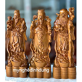 Bộ tượng tam đa phúc lộc thọ cao 20cm và 30cm chất liệu gỗ bách xanh nguyên khối
